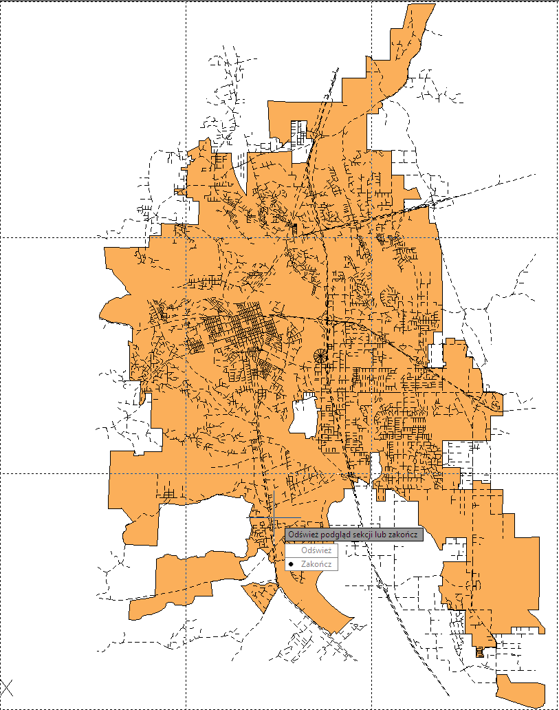 Przed wygenerowaniem skoroszytu mapy można wyświetlić podgląd jego podziału na sekcje.