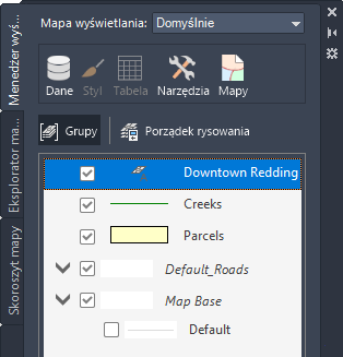 - Aby zmienić nazwę warstwy wybierz ją, a następnie kliknij jej bieżącą nazwę. Wprowadź nową nazwę, na przykład „Downtown Redding”.