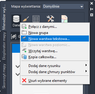 Warstwa tekstu jest tworzona w Menedżerze wyświetlania w sposób bardzo podobny do warstwy rysunku.