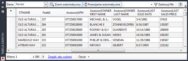 - Opuść Tabelę danych ale pozostaw ją otwartą do następnego ćwiczenia.