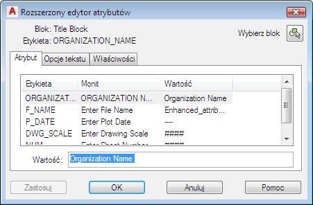 - Kliknij dwukrotnie ramkę tabelki rysunkowej, aby wyświetlić Edytor atrybutów rozszerzonych.