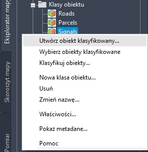 Kliknij prawym przyciskiem myszy odpowiednią klasę obiektów, aby utworzyć obiekt w tej klasie.