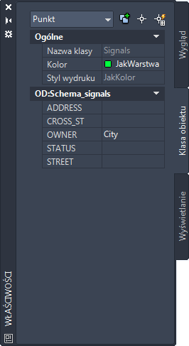 Podczas udostępniania obiektów z pliku DWG na mapie tracone są informacje dotyczące stylu. Punkty nie mają stylu, dlatego nie można ich wyświetlać na nowej mapie. W celu wyświetlania sygnałów należy przypisać do mapy styl punktu.