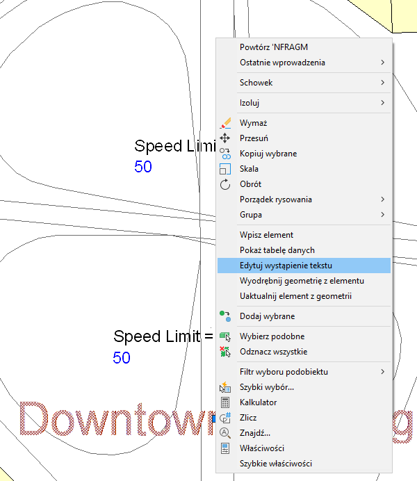 Każdy opis jest jednym „wystąpieniem tekstu”. Do warstwy tekstu można dodać wiele wystąpień tekstu. Po późniejszym uzyskaniu połączenia z warstwą tekstu wszystkie wystąpienia tekstu zostaną wstawione na mapie.