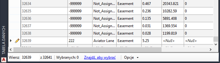 W oknie Tabela danych dodaj informację o działce.