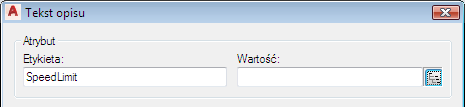 Tekst „Speed Limit =” stanowi statyczną etykietę tekstową. Tekst „50” stanowi wartość dynamiczną dostarczaną z tabeli danych obiektu.