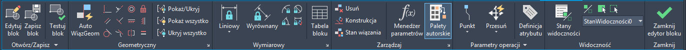 Na wstążce zostanie wyświetlona nowa karta o nazwie Edytor bloku, a w Edytorze bloku zostanie otwarty nowy rysunek.