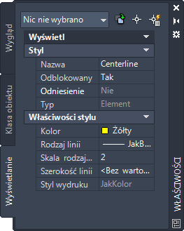 | Element | Określa kolor, rodzaj linii, skalę rodzaju linii, szerokość linii i styl wydruku dla obiektów rysunkowych używających tego stylu. |