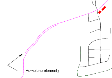 Opcja Usuń powielone obiekty lokalizuje obiekty, które mają te same punkty początkowe i końcowe jak również wszystkie inne punkty w ramach tolerancji. Można usunąć jeden z obiektów.