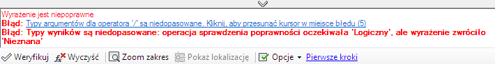 Po zapisaniu wyrażania zawsze zostaje ono sprawdzone pod kątem poprawności. Poprawność można sprawdzić przed zapisaniem wyrażenia.