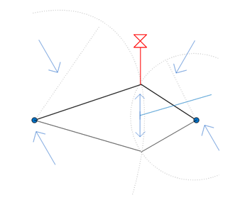 Polecenie odległość/odległość umożliwia wyznaczenie nowego punktu na podstawie dwóch punktów i dwóch odległości od tego nowego punktu.
