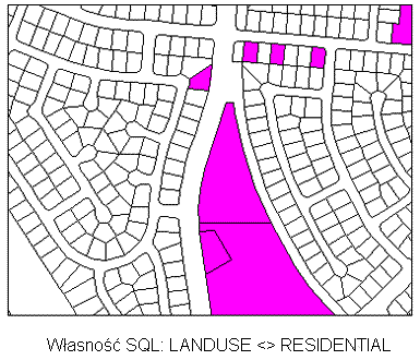 Przywołane przez zapytanie zamknięte polilinie są wypełniane fioletowym pełnym wzorem kreskowania.