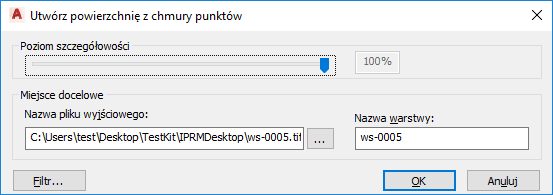 - W wierszu polecenia wprowadź MAPCREATEPCSURFACE.