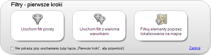 Aby zapobiec wyświetlaniu przycisków uruchamiania za każdym razem, gdy tworzone jest wyrażenie, zaznacz pole wyboru Nie pokazuj przy uruchamianiu. Można je wyświetlić ponownie, klikając opcję Pierwsze kroki.