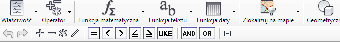 Jeśli strona startowa wyrażenia jest włączona, zostaną wyświetlone przyciski reprezentujące różne typy wyrażeń. Kliknięcie przycisku powoduje wstawienie szablonu wyrażenia.