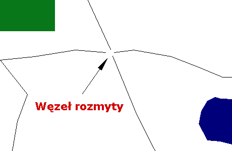 Punkt zrzutu będzie jednym z istniejących węzłów u będzie można wybrać czy ma być on jednym z połączeń punktów końcowych czy funkcjonować jako samodzielny węzeł. W oparciu o ustawienia program Zestaw narzędzi AutoCAD Map 3D ustala najlepszy punkt lokalizacyjny, obliczając, które punkty mają największą wagę na podstawie ich lokalizacji względem innych węzłów. Brane pod uwagę są również zakotwiczone węzły. Węzły zakotwiczone, choć nie są zmieniane ani przemieszczane podczas operacji Zastąp skupisko węzłów jednym węzłem, są dołączane do procesu przeliczania który określa punkt zrzutu.