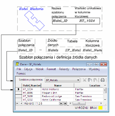 Szablon połączenia określa nazwę tabeli bazy danych i kolumny kluczowe używane do jednoznacznej identyfikacji każdego rekordu.