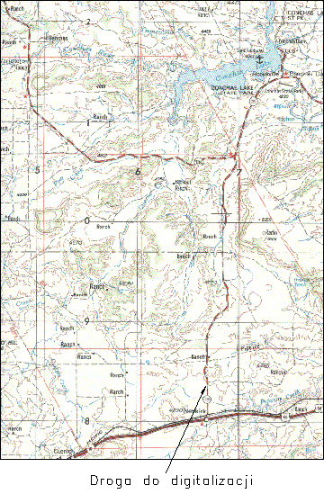- Aby zagwarantować dokładność, można również zdigitalizować inne punkty o znanych współrzędnych. Digitalizacja większej ilości punktów jest ważna przy operacjach: Uzgadnianie styków map lub Naciąganie dwóch map.