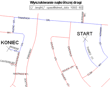 Wynikiem analizy jest najkrótsza droga, między danymi dwoma punktami, która została wyznaczona nie w oparciu o długości obiektów liniowych (gałęzi) lecz w oparciu o czas pokonania gałęzi.