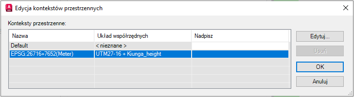 - Kliknij opcję Edycja układu współrzędnych i w oknie dialogowym Edycja kontekstów przestrzennych kliknij wpis.
