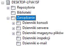 Można uzyskać dostęp do plików dzienników konsoli, serwera, magazynu plików, inspekcji, bramy programu Vault i poczty e-mail znajdujących się w folderze Zarządzanie.