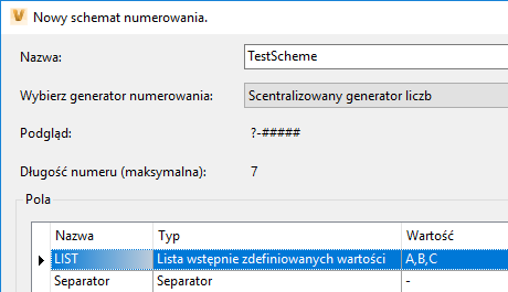 ...Załóżmy, że jest dostępny następujący schemat numerowania o nazwie TestScheme.