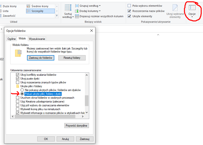 Włącz opcję „Pokaż ukryte pliki, foldery i dyski” w Eksploratorze plików systemu Windows > Opcje, aby zlokalizować folder.