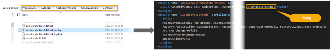 Aby włączyć okno dialogowe zapisywania VDS, usuń ciąg „InteractionEvents” z sekcji DisableVdsForCmd