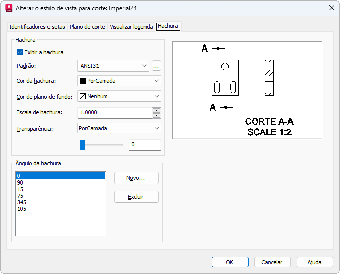 Guia Hachura (Gerenciador de estilo de vista para corte)