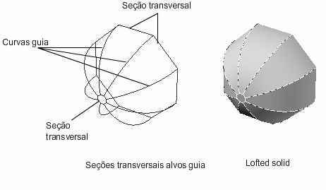 Cria um sólido ou superfície 3D ao especificar uma série de cortes transversais. Os cortes transversais definem a forma do sólido ou superfície resultante. É preciso especificar ao menos dois cortes transversais.