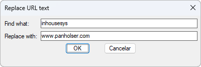 É possível especificar um URL completo ou parcial. Por exemplo, você pode substituir todas as referências de hiperlink .com por .net ou substituir um URL interno por um URL para um site externo em uma única operação.