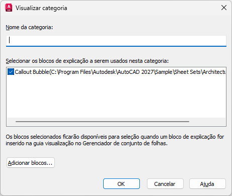 Fornece um método para listar os blocos de explicação adequados à categoria atual da vista.