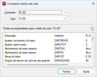 Compara as propriedades de dois estilos de cota ou exibe todas as propriedades de um estilo.