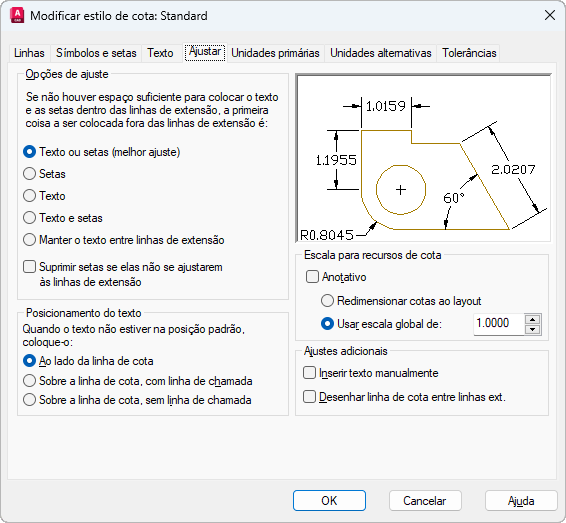 Fornece opções adicionais para o posicionamento do texto de cotas.