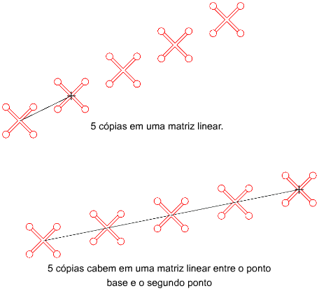 Os dois pontos especificados definem um vetor de deslocamento que indica a que distância dos originais os objetos copiados serão movidos e em que direção.