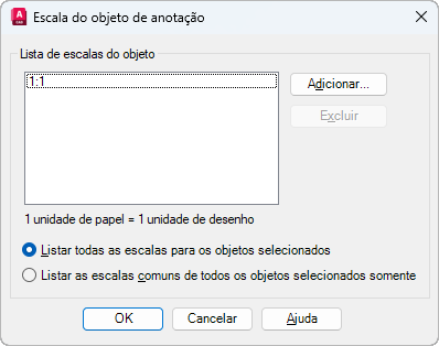 Adiciona ou exclui as escalas compatíveis com o objeto anotativo selecionado.