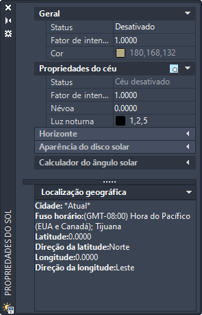 Exibe as coordenadas da direção do sol. Esta definição é somente leitura.