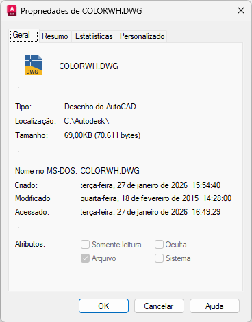 Exibe informações somente leitura sobre o arquivo de desenho, extraídas do sistema operacional.