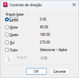 Configura a direção do ângulo zero. As opções a seguir afetam a entrada de ângulos, o formato de exibição e a entrada de coordenadas polares, cilíndricas e esféricas.