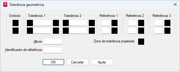 Depois que você selecionar os símbolos de características geométricas, a caixa de diálogo Geometric Tolerance é fechada e o seguinte prompt é exibido: