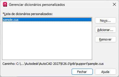 ORTOGRAF (comando) Pesquisa: Dicionários > Dicionário atual personalizado: Gerenciar dicionários personalizados