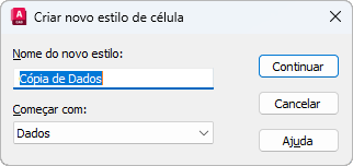 Especifica um nome para o novo estilo de célula e especifica o estilo de célula existente no qual o novo estilo de célula terá base.