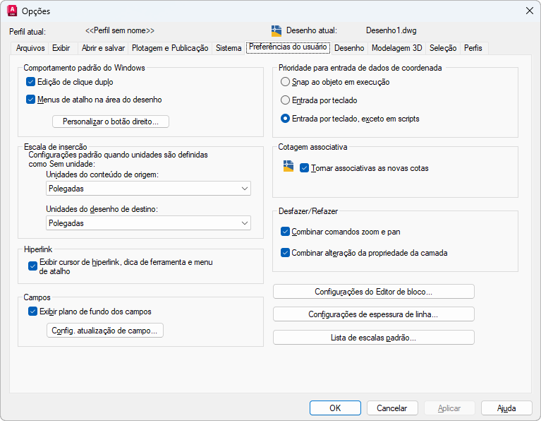 Controla se os menus de atalho Padrão, Editar e Comando estão disponíveis na área de desenho. (variável de sistema SHORTCUTMENU)