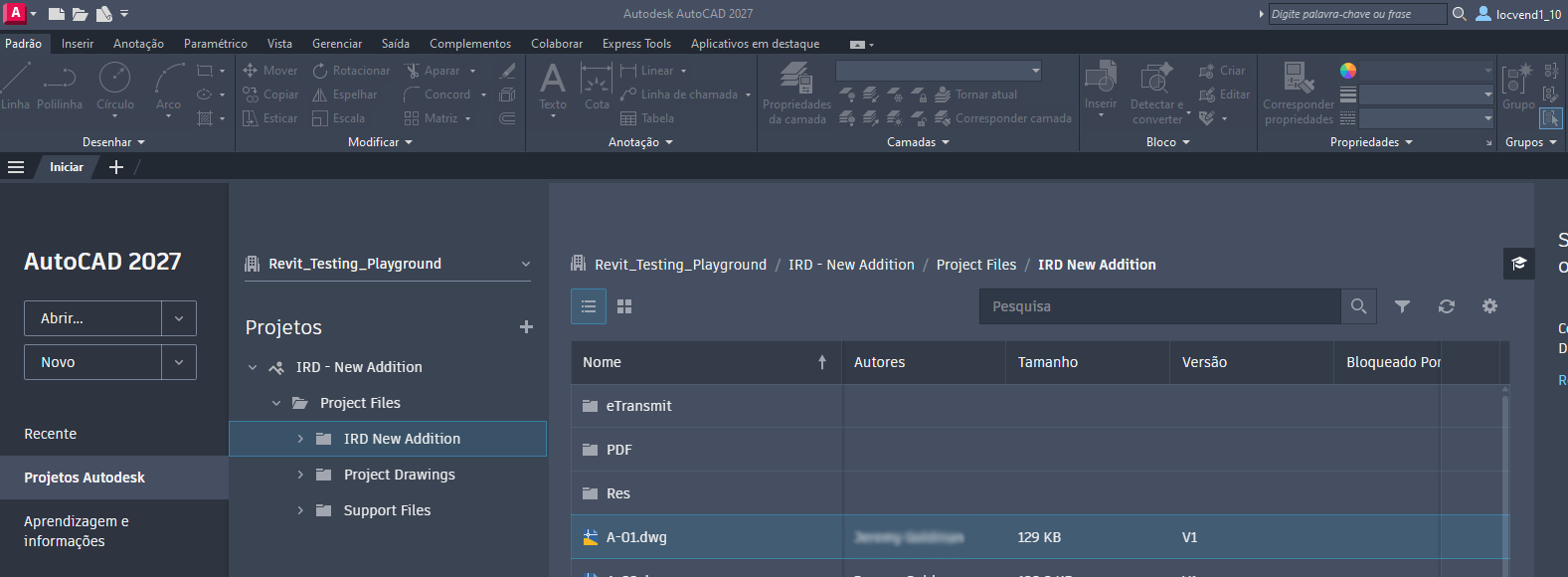 - Procure e abra um desenho no projeto.