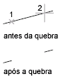 Os prompts exibidos dependem de como o objeto é selecionado. Se você selecionar o objeto utilizando o dispositivo apontador, o programa selecionará o objeto e tratará o ponto de seleção como o primeiro ponto de quebra. No próximo prompt, você pode continuar especificando o segundo ponto ou sobrepondo o primeiro ponto.