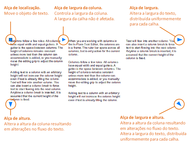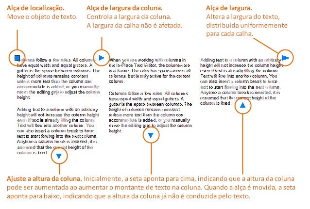 - Mova o cursor para os limites do quadro de texto (direita, parte inferior e canto) para ajustar a altura e a largura da coluna.
