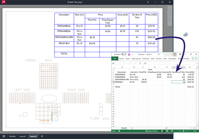 Se uma planilha vinculada tiver sido alterada, adicionando uma linha ou coluna, a tabela no desenho poderá ser atualizada adequadamente com as alterações usando o comando ATUALIZARVINCULODADOS. Da mesma forma, se uma alteração for efetuada em uma tabela no desenho, será possível atualizar a planilha vinculada usando o mesmo comando.