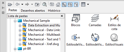 O DesignCenter fornece uma forma de localizar rapidamente o conteúdo, como arquivos de desenho, definições de bloco e hachuras.