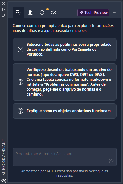 Exibe a paleta Autodesk Assistant, que fornece ajuda guiada por IA.