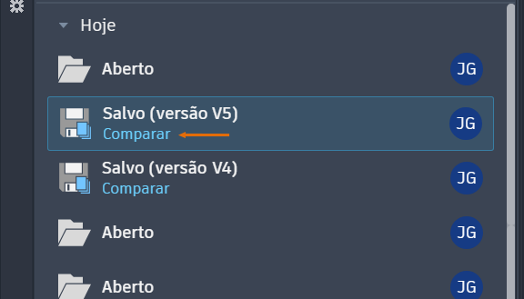 Quando você usa as Informações de atividade com um provedor de armazenamento na nuvem suportado, como o Forma Data Management, o Google Drive, o OneDrive, o Box ou o Dropbox, uma nova versão de cada desenho é gravada cada vez que você salvar. Clique em Comparar em cada quadro de versão para comparar versões anteriores e atuais com facilidade.